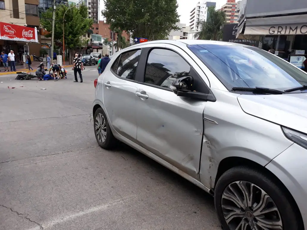 Ocurrió este jueves por la tarde en la esquina de General Paz y San Lorenzo. Un motociclista resultó herido tras ser embestido por un automóvil frente al Banco Nación.