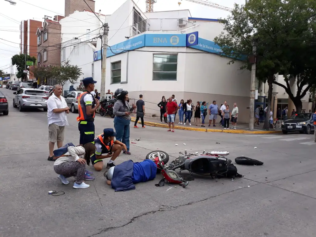 Ocurrió este jueves por la tarde en la esquina de General Paz y San Lorenzo. Un motociclista resultó herido tras ser embestido por un automóvil frente al Banco Nación.