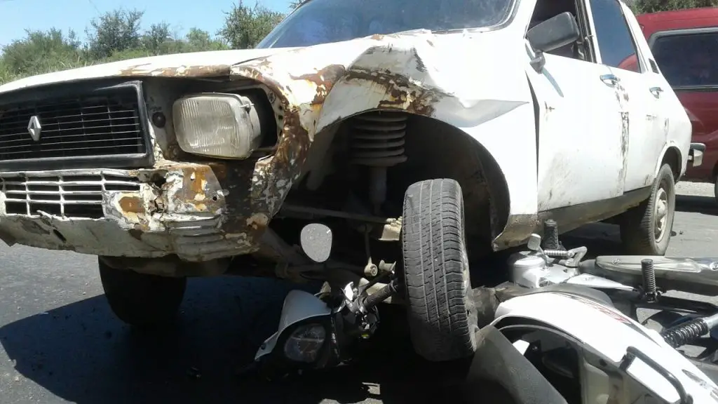 Aparentemente uno de los dos conductores se cruzó de carril y provocó el accidente en el medio de la ruta. La moto quedó literalmente debajo del auto y el motociclista sufrió lesiones que obligaron al traslado urgente hacia el hospital Gumersindo Sayago.