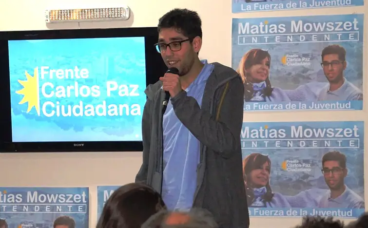 Intendencia 2019. El joven dirigente Matías Mowszet lanzó este domingo por la tarde su candidatura a la Intendencia por el frente Carlos Paz Ciudadana y reunió a la militancia en el hotel Italia. El acto contó con la presencia de referentes provinciales del kirchnerismo como Eduardo Fernández, Horacio Viqueira y Emanuel Rodríguez.