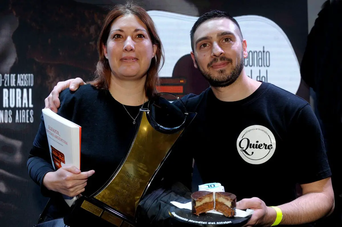 “Estamos sin palabras, quedamos mudos, ganamos el premio al mejor alfajor y la categoría al mejor triple también; es el premio a una pasión, empezamos con mucho esfuerzo en 2021 y fuimos cambiando recetas, hasta último momento”, dijeron a Télam Yanina Acosta y Maximiliano Santos, el joven matrimonio oriundo de la ciudad de Campana, ambos de 37 años, que resultó triunfador en la competencia internacional.