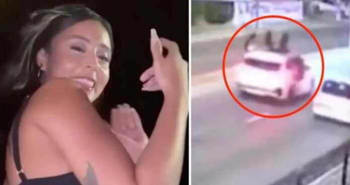 Según informa el medio Bio Bio, los informes indican que, en un momento determinado, ella decidió subir al techo del auto, para tomarse fotografías para sus redes sociales.