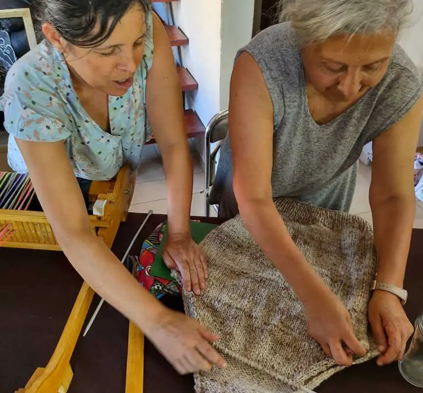 «Doy clases de tejido al crochet, dos agujas, de tejido en telar vertical, telar maría, telar de caronilla, bastidor de clavos y otras técnicas. Les enseño a hacer las telas, a tejer, y a diseñar los productos», comentó Sánchez en conversación con Carlos Paz Vivo!