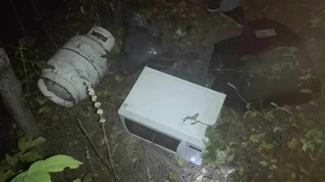 A la llegada de los uniformados procedieron a realizar un rastrillaje, y en un descampado cercano encontraron una garrafa de 10 kg, un horno microondas , un taladro inalámbrico con cargador, una sierra eléctrica y un televisor de 21 pulgadas.