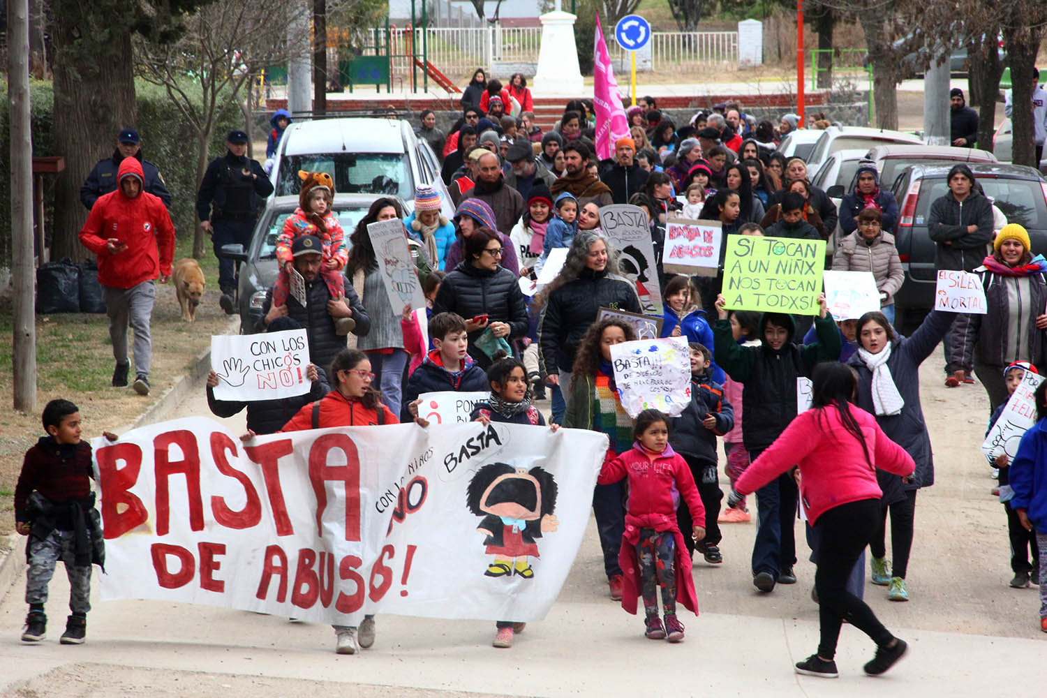 Con carteles de «Basta de Abusos» o » Con los niños no», los vecinos de la zona se aglutinaron en la tarde del jueves en la plaza central de Icho Cruz y marcharon por la comuna, cortando por momentos media calzada de la ruta 14.