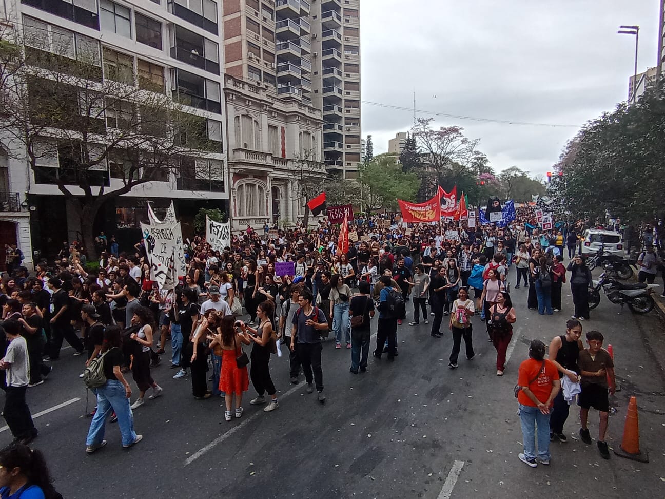 La movilización partió desde el Pabellón Argentina de la Ciudad Universitaria y se desplazó hasta el Patio Olmos donde se leyó un documento consensuado con todas las universidades del país.