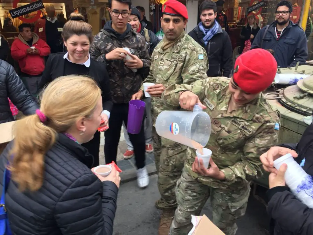 Durante toda la tarde Compañía de Ingenieros Paracaidistas 4 del Ejército ofreció chocolate caliente y alfajores a los ciudadanos que asistieron a la procesión, quienes a diferencia del año pasado se quedaron hasta el final de los festejos.