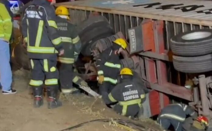 Según informó Cadena 3, por causas que se investigan, el camión embistió desde atrás al vehículo, lo arrastró unos 50 metros y el rodado menor quedó hundido en una zanja entre la colectora y Panamericana con cuatro ocupantes adentro.