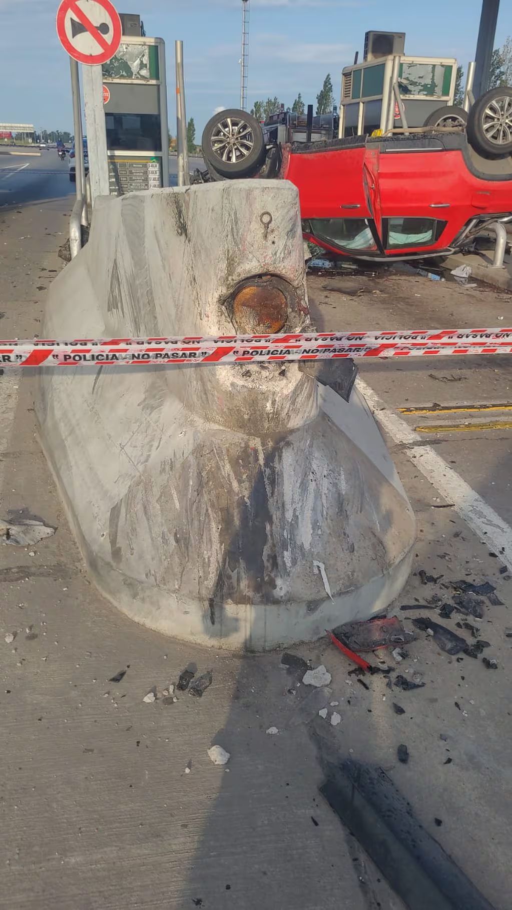 El accidente tuvo lugar minutos después de las 17, cuando, por motivos aún bajo investigación, una camioneta Fiat Toro que se dirigía desde Carlos Paz hacia la Capital, impactó contra el muro de contención de las casillas de peaje.