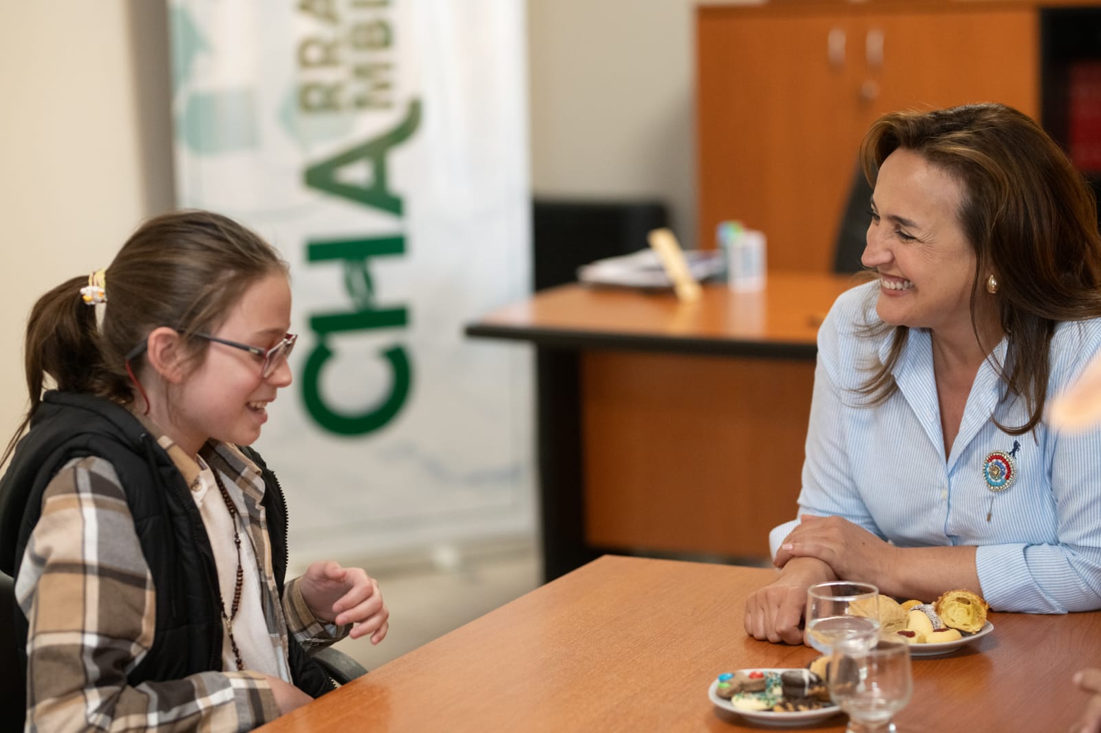 La vicegobernadora de la Provincia, Myrian Prunotto, recibió este viernes en Charras a Ian Moche y su madre, Marlene Spesso.