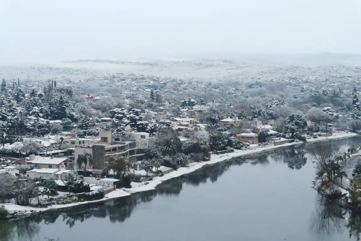 Nieve en Carlos Paz y el Valle: Las primeras fotos de un fenómeno único