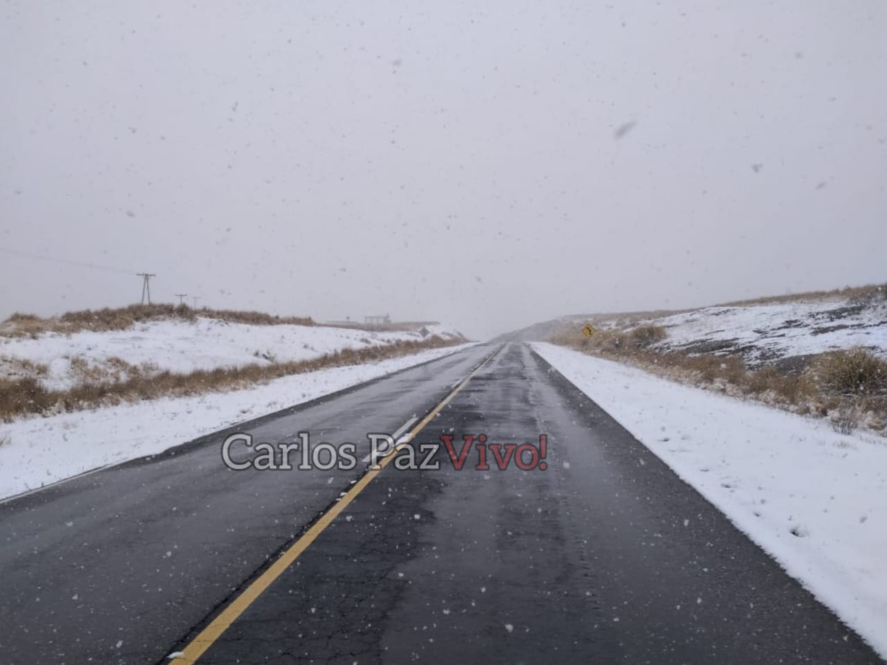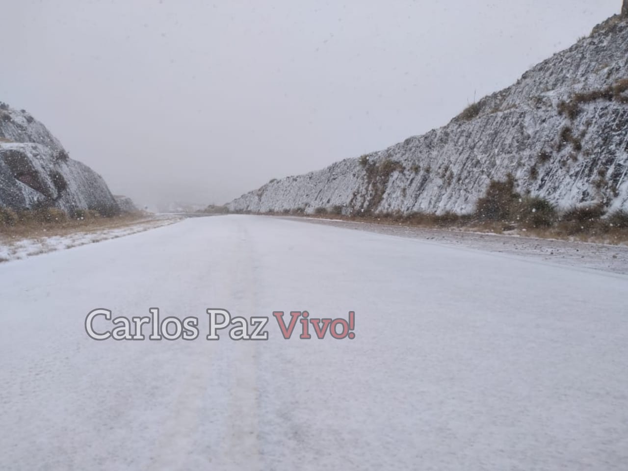 Una de las postales más impactantes se da a la altura del parador El Cóndor, sobre la ruta E-34, que conecta Villa Carlos Paz con Mina Clavero. Allí, la caída de nieve es consistente y copiosa, por lo que generó un gran manto blanco en el cordón serrano e incluso el acumulamiento y congelamiento de la carpeta asfáltica.