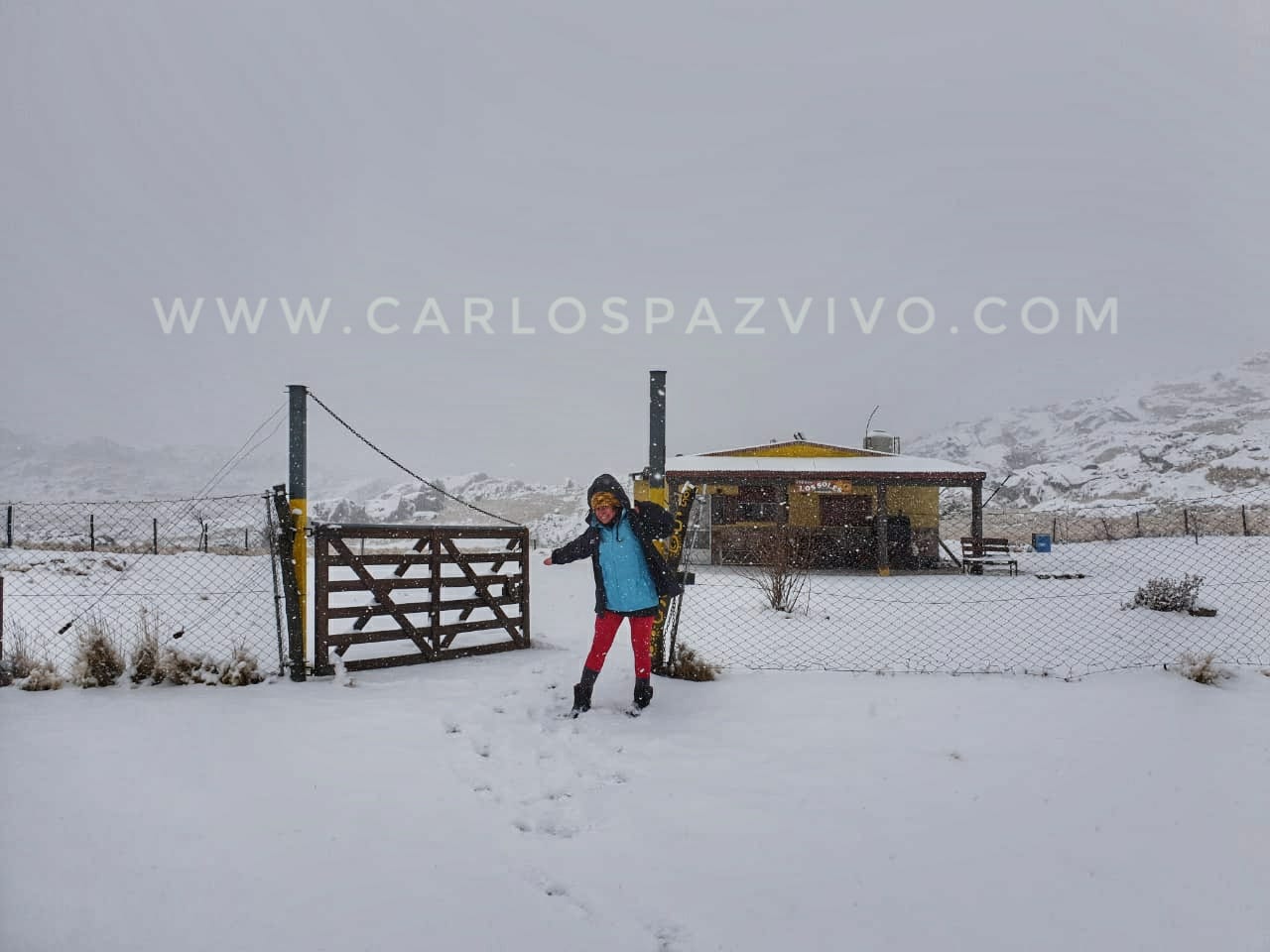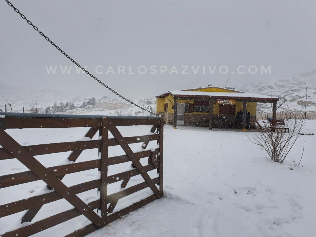 Desde el Parador La Pampilla, Cristian y Yasmín contaron que es la primera nevada copiosa que se da en el año y que tuvieron que proveerse de leña para calefaccionarse, debido a que por momentos, la temperatura alcanzó los -6°C.