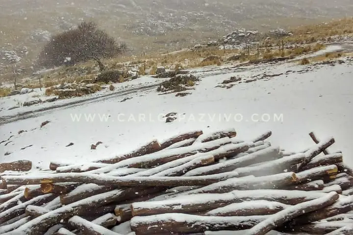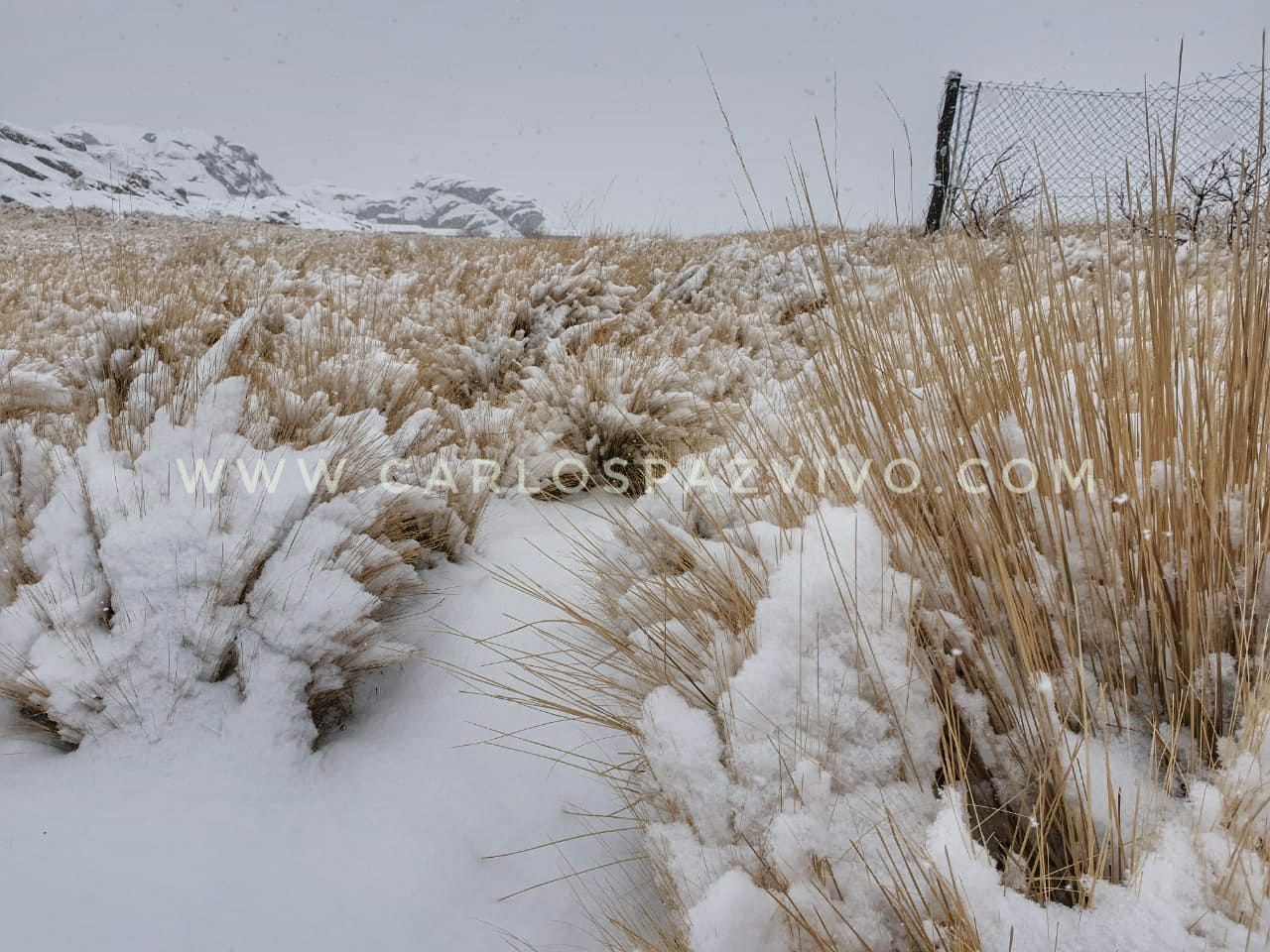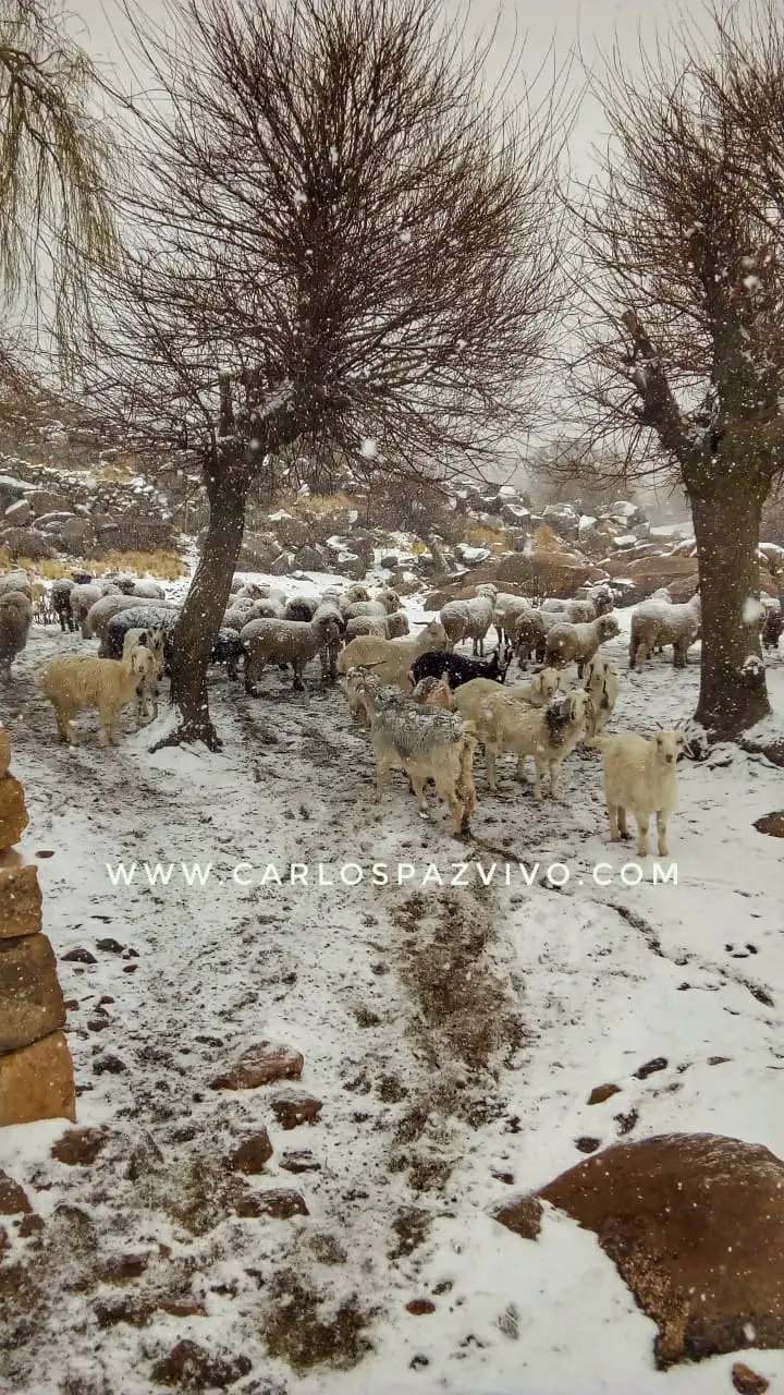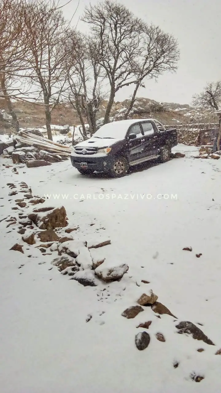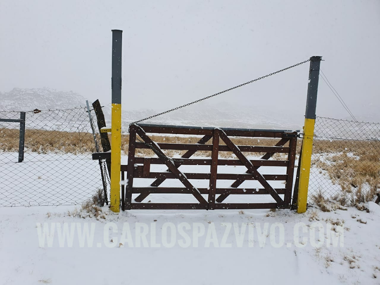 En ese sitio nevó durante toda la mañana y la tarde y el sector se tiñó de blanco. Edgard nos envió este video con sus animales y fotos del lugar.