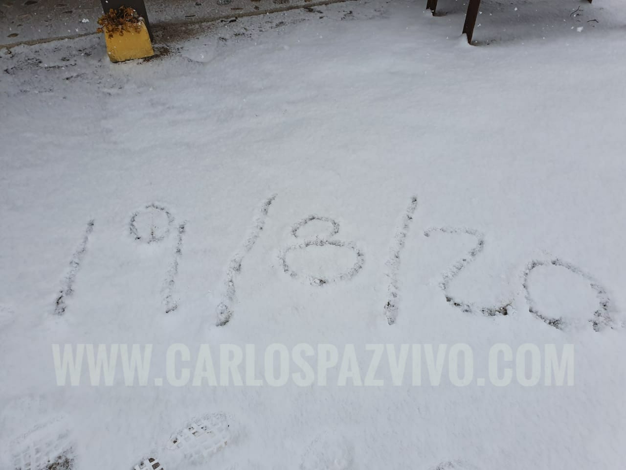 En La Cumbre también nevó por momentos, aunque no alcanzó para formar el característico el manto blanco en el suelo.
