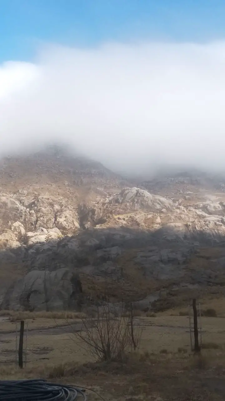 Si bien amanecimos con la noticia de que nevaba en algunos lugares de Pampa de Achala y el pronóstico anunciaba que este fenómeno aumentaría por la tarde, finalmente no fue tan así y solo nevó en lugares precisos hasta el mediodía. Luego una densa niebla cubrió casi todas Sierras Grandes.