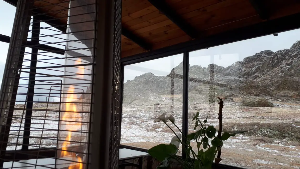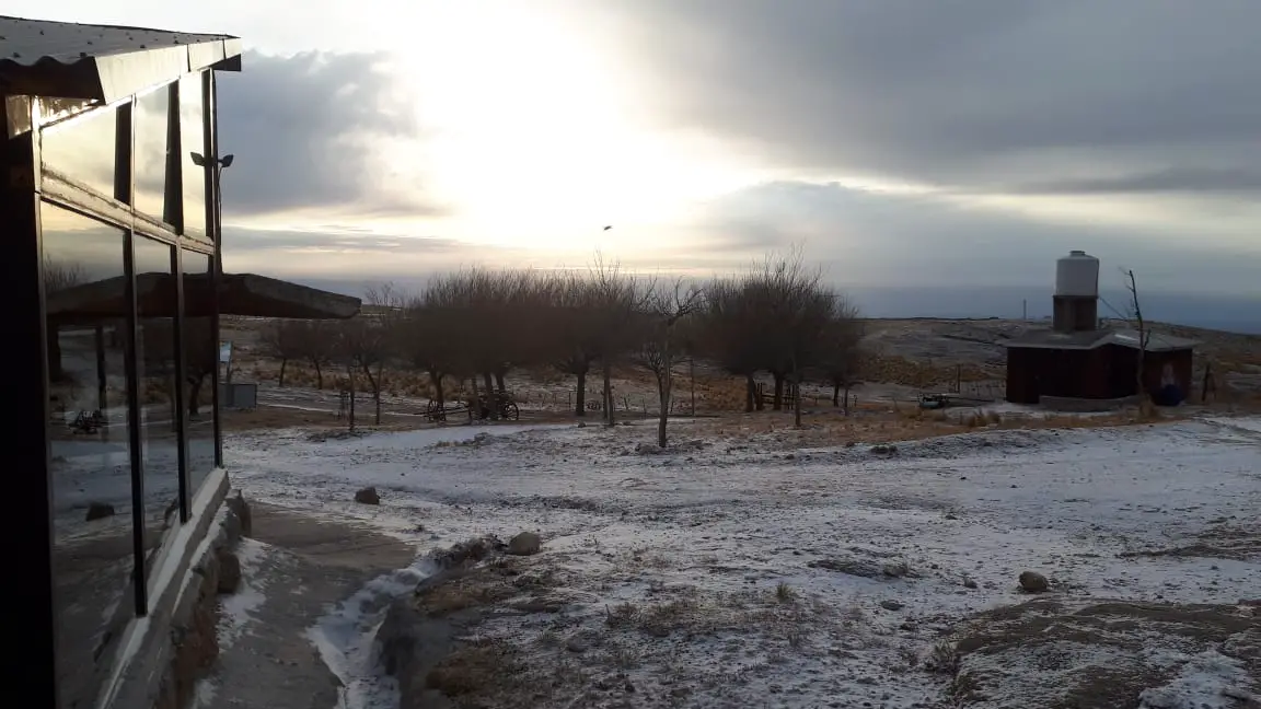 Sandra Pedernera, propietaria del lugar nos cuenta que “nevó desde las 6:20 de la mañana hasta las 7:30”. “En este momento hay viento, y seguramente no continuará nevando por ahora”, relató.