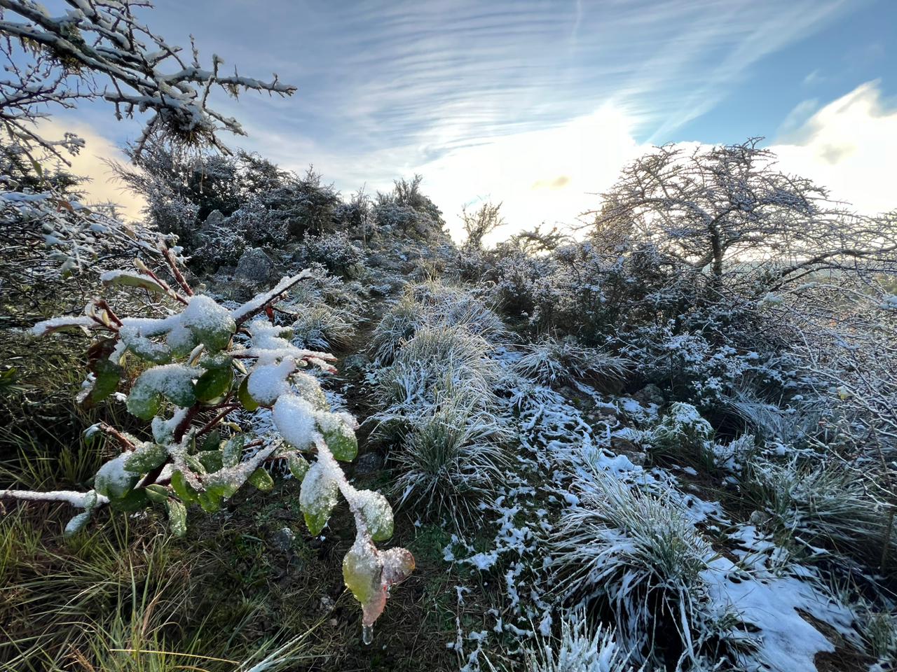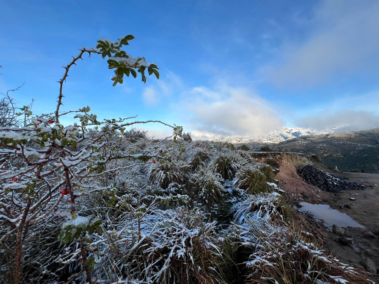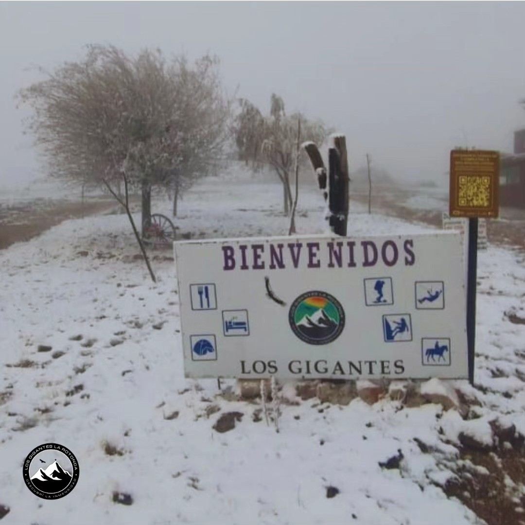 En Los Gigantes también comenzó a nevar en las últimas horas del jueves y desde el parador La Rotonda compartieron algunas imágenes que nos muestran como amaneció el lugar.