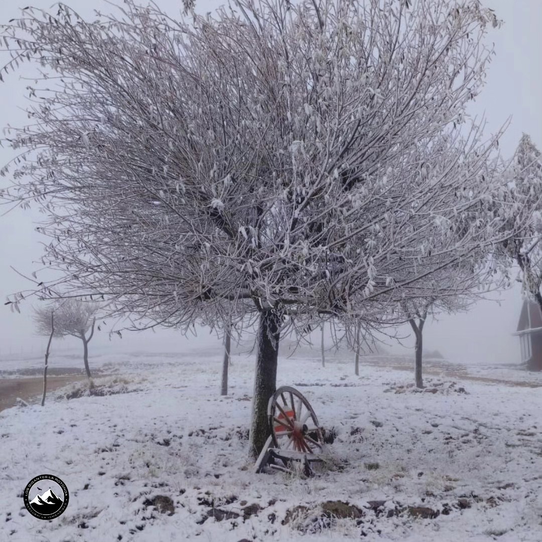 Detrás de los Gigantes, en el paraje Las Torrecillas, Edgar Domínguez nos cuenta que amanecieron con una temperatura agradable, y nos comparte sus fotos y videos donde vemos como el sol se refleja sobre el manto blanco de la nieve caída durante la noche.