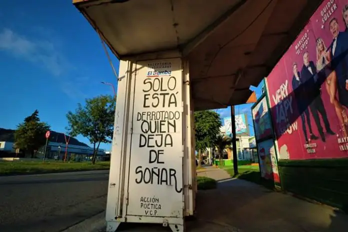 El graffiti de las chicas de Acción Poética me levantó en partes…de a pedazos. Tiene sus años este cartel tatuado en un kiosko de chapa de los pocos que sobreviven en mi Villa y en el mundo que se viene digital. Fue PhoTortul en su momento…en los albores de este álbum catárquico y personal.