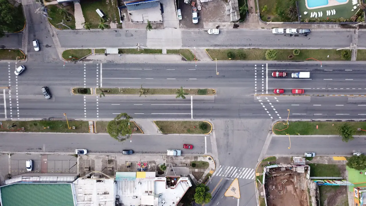 Con un barbijo adecuado, Dron Ramón gana altura desde el Hotel Mónaco y se posiciona sobre la Avenida San Martín para tener un panorama de la situación.
