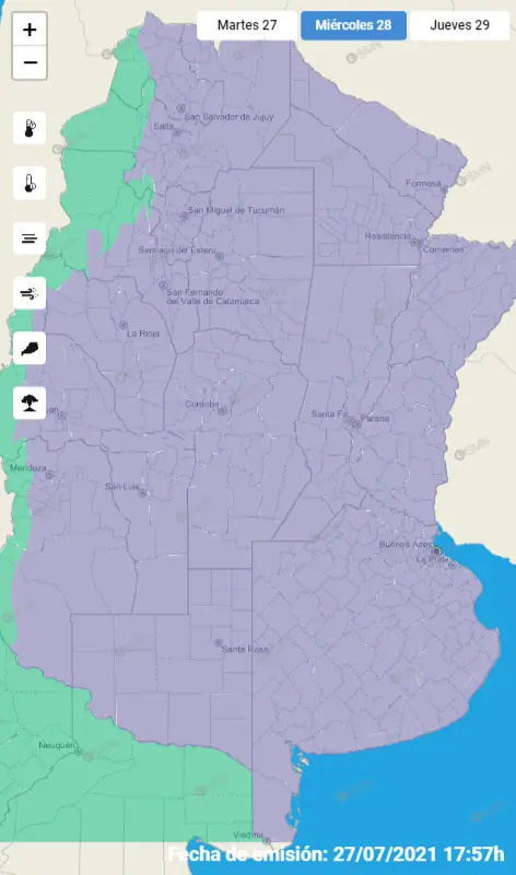 Según el portal infoclima “El aire frío sigue extendiéndose sobre el centro y norte del país, generando una ambiente invernal con temperaturas por debajo de lo normal. El sistema de baja presión presente en la costa atlántica mantiene la circulación del sudoeste con velocidad considerable sobre esa región.”