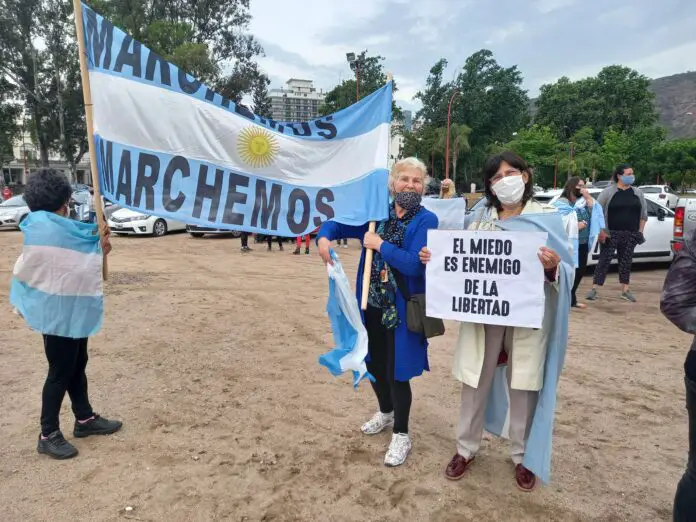 Con banderas argentinas y pancartas que hacían alusión a la situación de la Justicia, los manifestantes volvieron a protestar contra el Gobierno que encabezan Alberto Fernández, y Cristina Fernández de Kirchner.