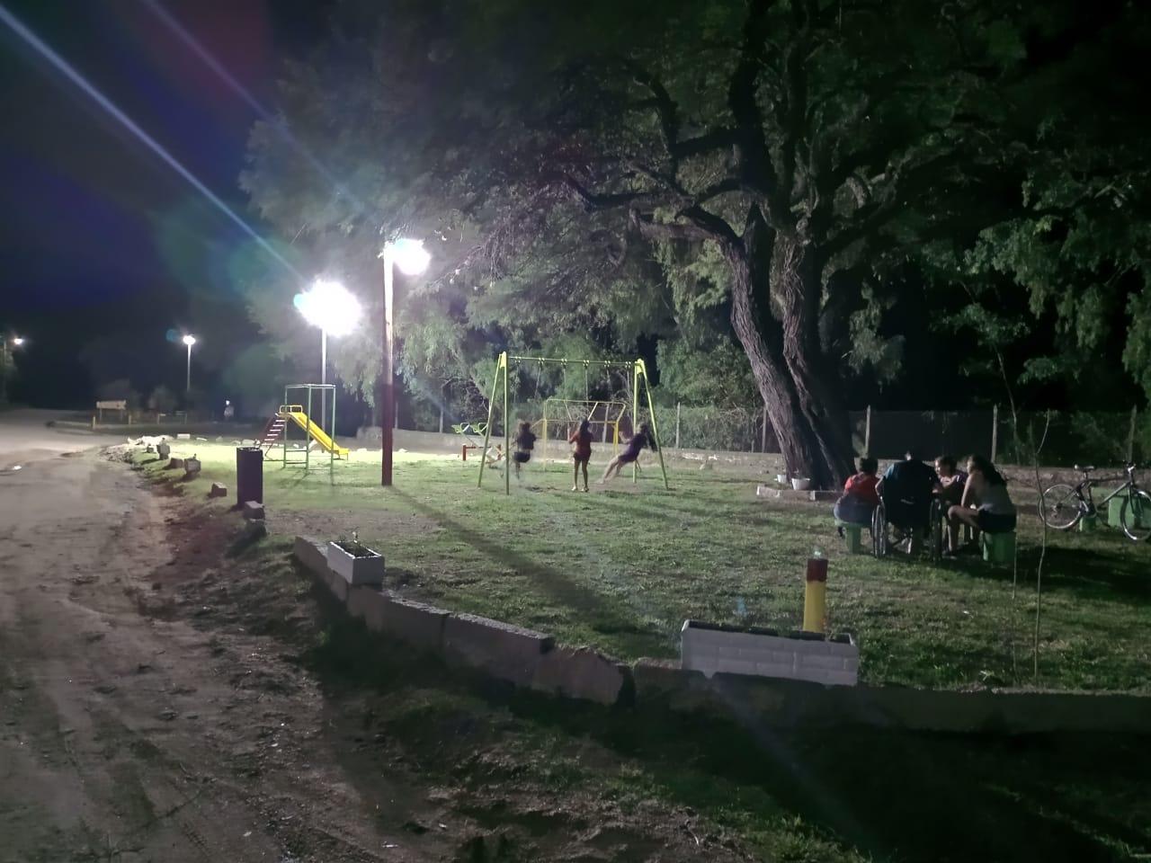 Otro sector lúdico también fue inaugurado el día jueves en la Plaza del Algarrobo, junto a otra columna de luces que, además de contribuir a la seguridad, permite extender el horario de disfrute del espacio público por parte de las familias del barrio.