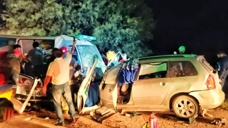 Cuatro personas -dos ocupantes del Peugeot y dos de la ambulancia-resultaron gravemente heridos, señaló Diario Chilecito