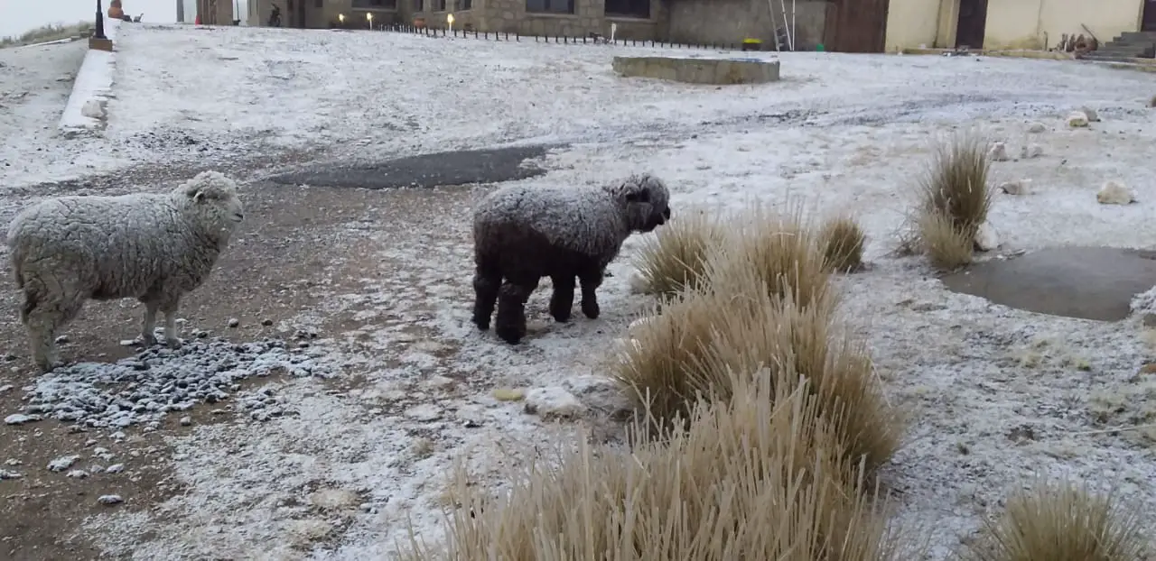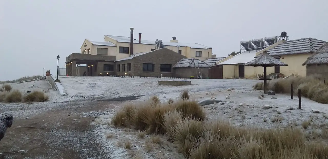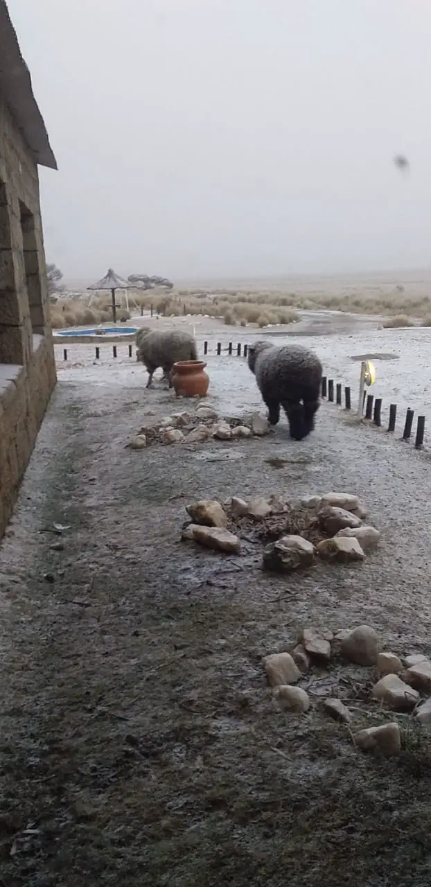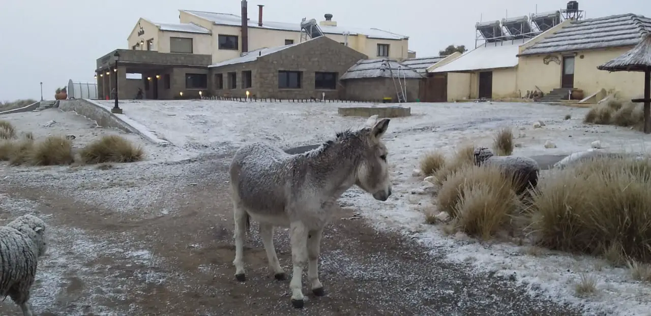 En la Posta, hotel ubicado en la zona mas alta del camino de las Altas Cumbres también comenzó a nevar y nos envían estas bella fotos con sus animales bajo los copos blancos