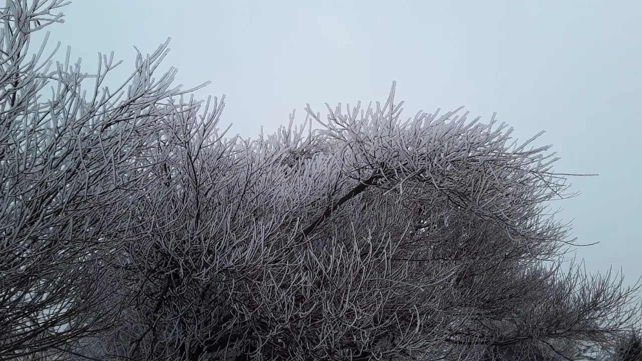 Martín de Achala, desde el paraje Cerro Hermoso, nos muestra la nieve ya acumulada en el suelo y como amanecieron las plantas cubiertas de hielo.