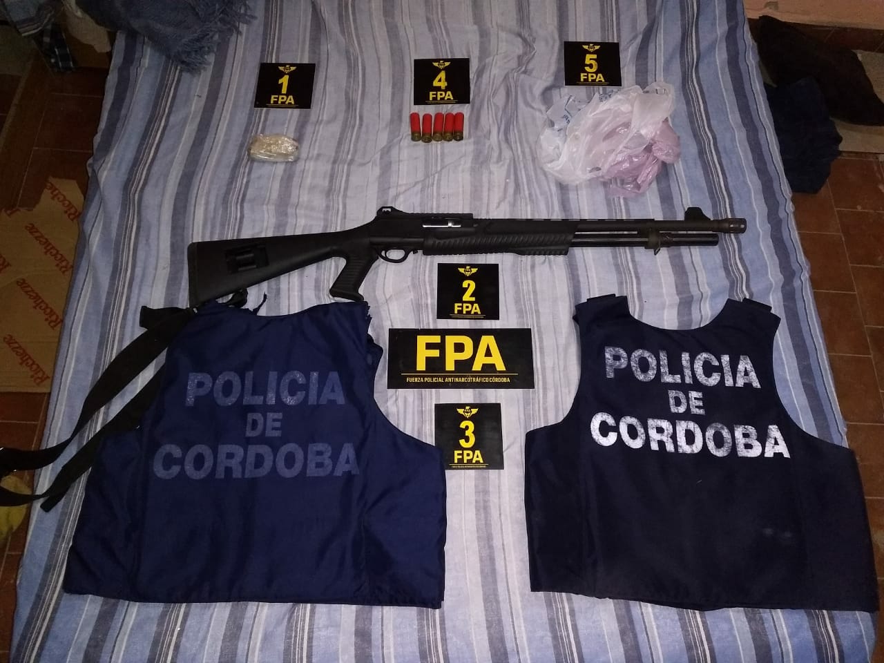 En un operativo dirigido por el Ministerio Público Fiscal, la Fuerza Policial Antinarcotráfico secuestró cocaína, marihuana, armas de fuego, más de un cuarto de millón de pesos, chalecos antibalas con la inscripción de Policía de Córdoba y detuvo a un sujeto que comercializaba estupefacientes en la región sudeste de la Provincia.