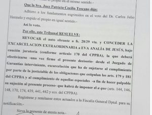 La Justicia le otorgó la excarcelación extraordinaria, confirmó Carolina Abregú, integrante de la Mesa de Trabajo “Justicia por Higui-Analía de Jesús”.