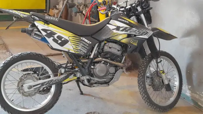 Se trata de una Honda Tornado negra con detalles en blanco y amarillo.