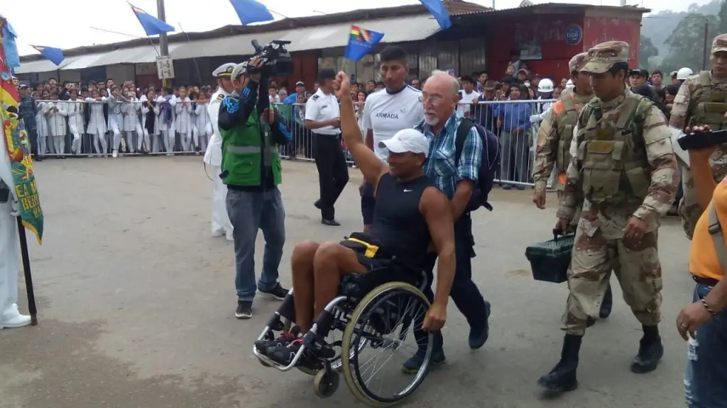 “Fue algo impresionante y muy loco, porque nos sobrepaso. Armaron un acto para mi cruce, con banda militar, con danzas típicas argentinas y bolivianas. Se izó la bandera Argentina, se tocó el himno nacional. Se nos hacía un nudo en la garganta cada segundo”, prosiguió el deportista.