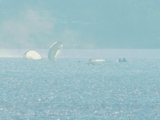 Por Darío Spadafore. No es la primera vez que se ve un espectáculo semejante sobre las aguas del lago San Roque, pero otra vez se transformó en el centro de atención para los que pasaban por la Costanera de Carlos Paz.