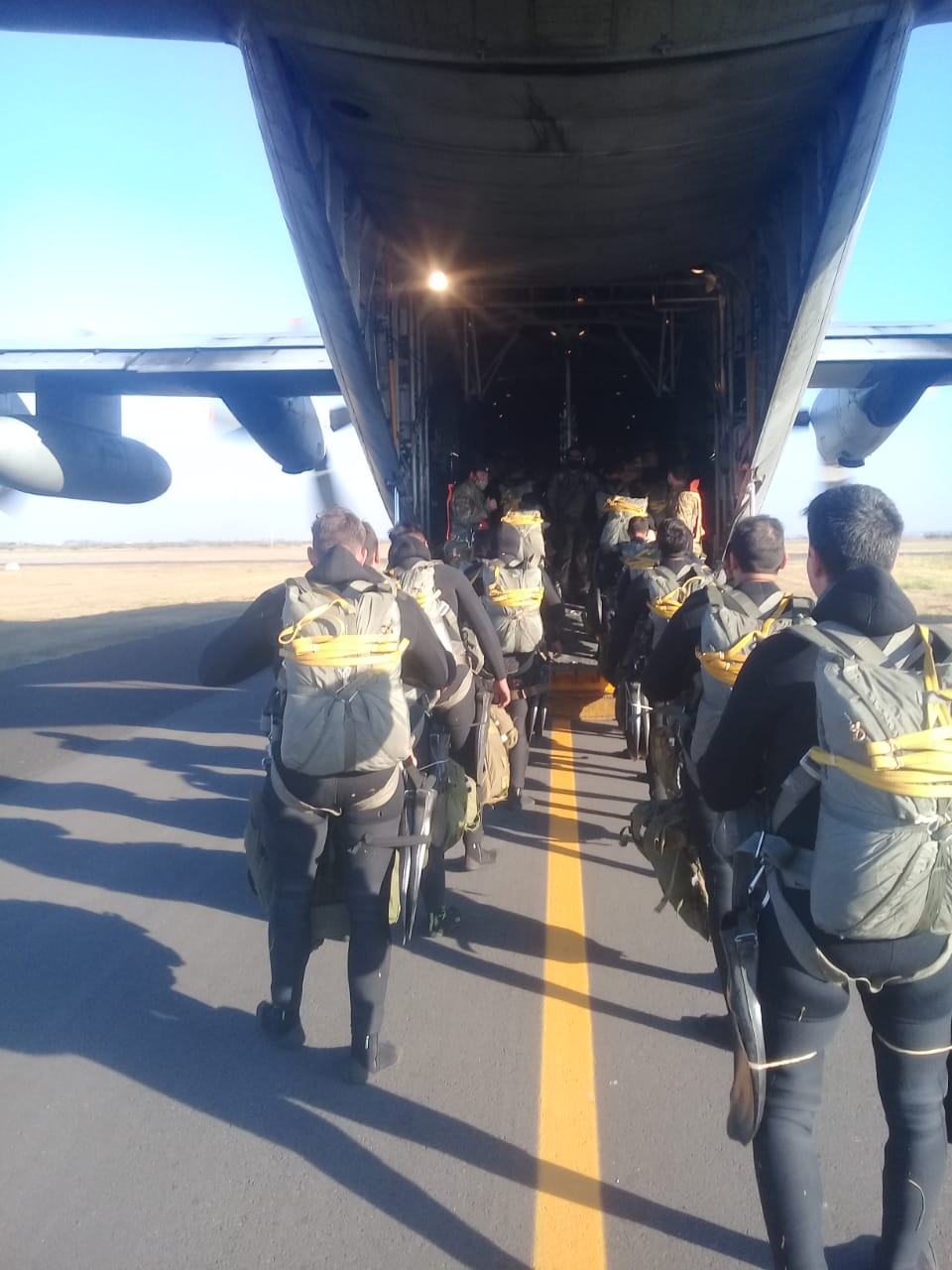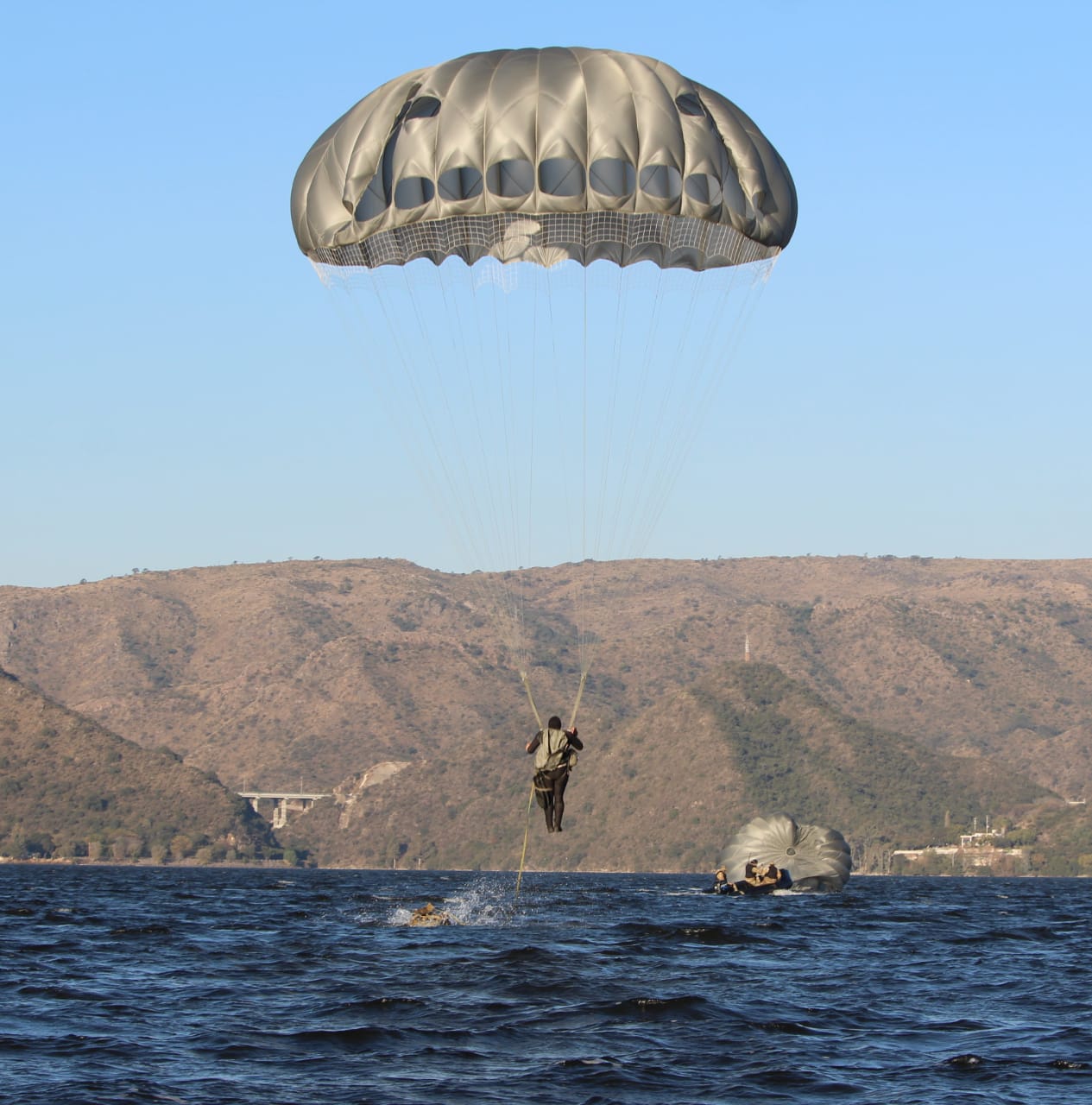 Sucedió este lunes en el marco del adiestramiento operacional de las Fuerzas de Operaciones Especiales del Ejército Argentino (FOE), y militares de todo el país pertenecientes se lanzaron desde un Hércules a 300 metros de altura al espejo de agua. Como si fuera poco, luego realizaron unos 3 mil metros de natación con una mochila de 40 kilos hasta alcanzar la costa.