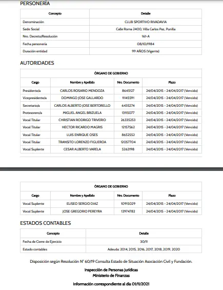 “La idea es que el club se ponga en orden. Como padres y madres pedimos a la Inspección de Personas Jurídicas que fije una comisión normalizadora donde podamos llevar al club a un buen puerto”, remarcó Andrea Barrera y agregó que la institución, al 1 de noviembre de 2021, posee una comisión directiva con mandato vencido, según consta en la consulta de estado de situación al organismo regulador.