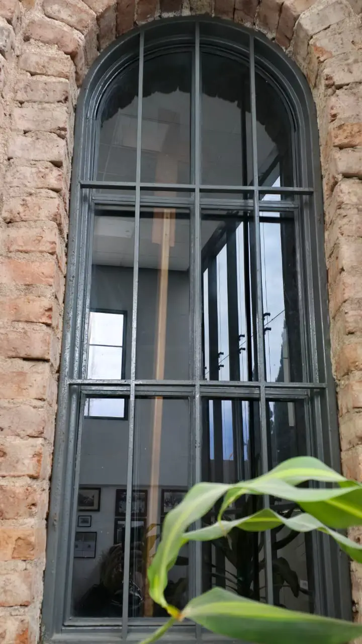 El Cura del Pueblo posa, ante mi pedido, con la mirada posada en los ventanales que da al histórico Pasaje del Carmen y la misma estampa con la que me recibió, mate en mano y termo (al modo uruguayo) bajo el brazo.