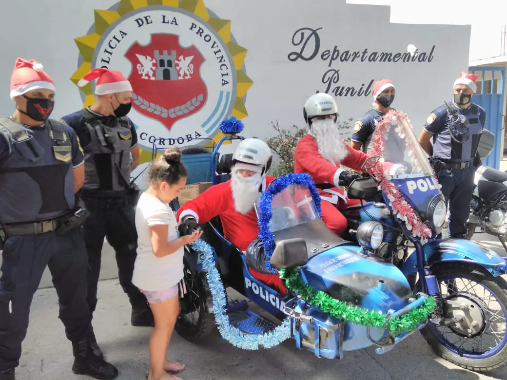 Lo hicieron las distintas divisiones que integran la Departamental Punilla. Llamó la atención a los más pequeños, que Papá Noel viajaba en un Sidecar.