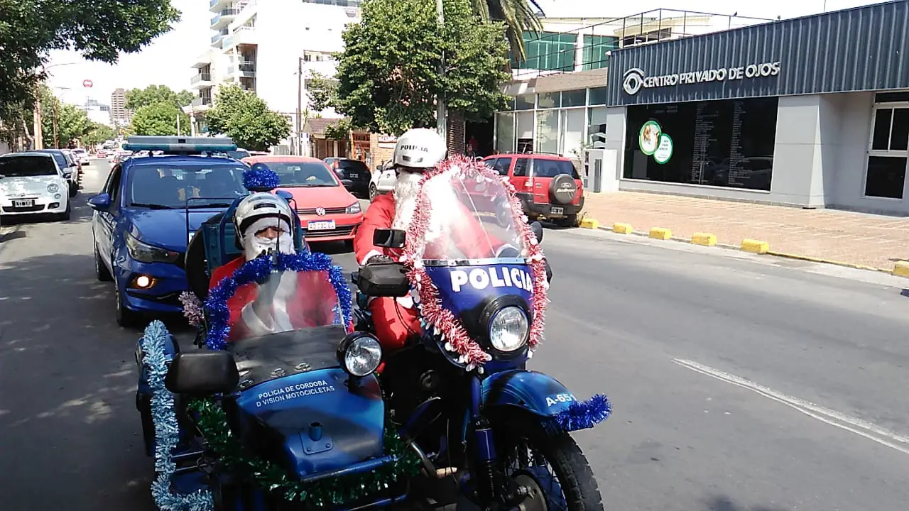 En la víspera de la Nochebuena, Papá Noel se subió a un Sidecar y acompañado de la Policía, recorrió las calles de la ciudad.