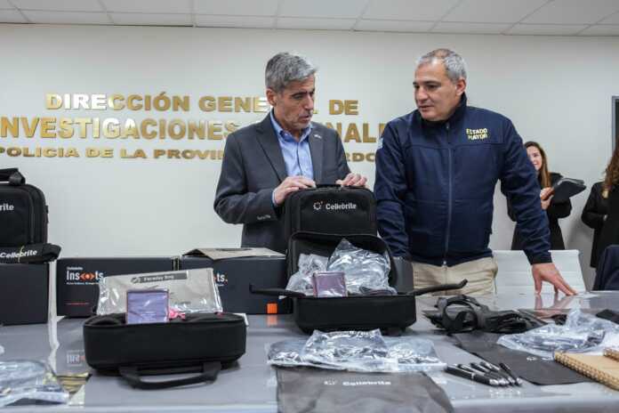 Este lunes 14 de Julio, en las oficinas de la dirección General de Investigaciones Criminales de la Policía de Córdoba (Jefatura de Policía), el ministro de Seguridad, Juan Pablo Quinteros, el jefe de Policía, Leonardo Gutiérrez, y el director general de Investigaciones Criminales Alberto Bietti, presentaron cuatro nuevos dispositivos UFED marca Cellebrite Insights, de origen israelí, que se suman como un recurso estratégico para las tareas rutinarias de investigación de la fuerza policial.
