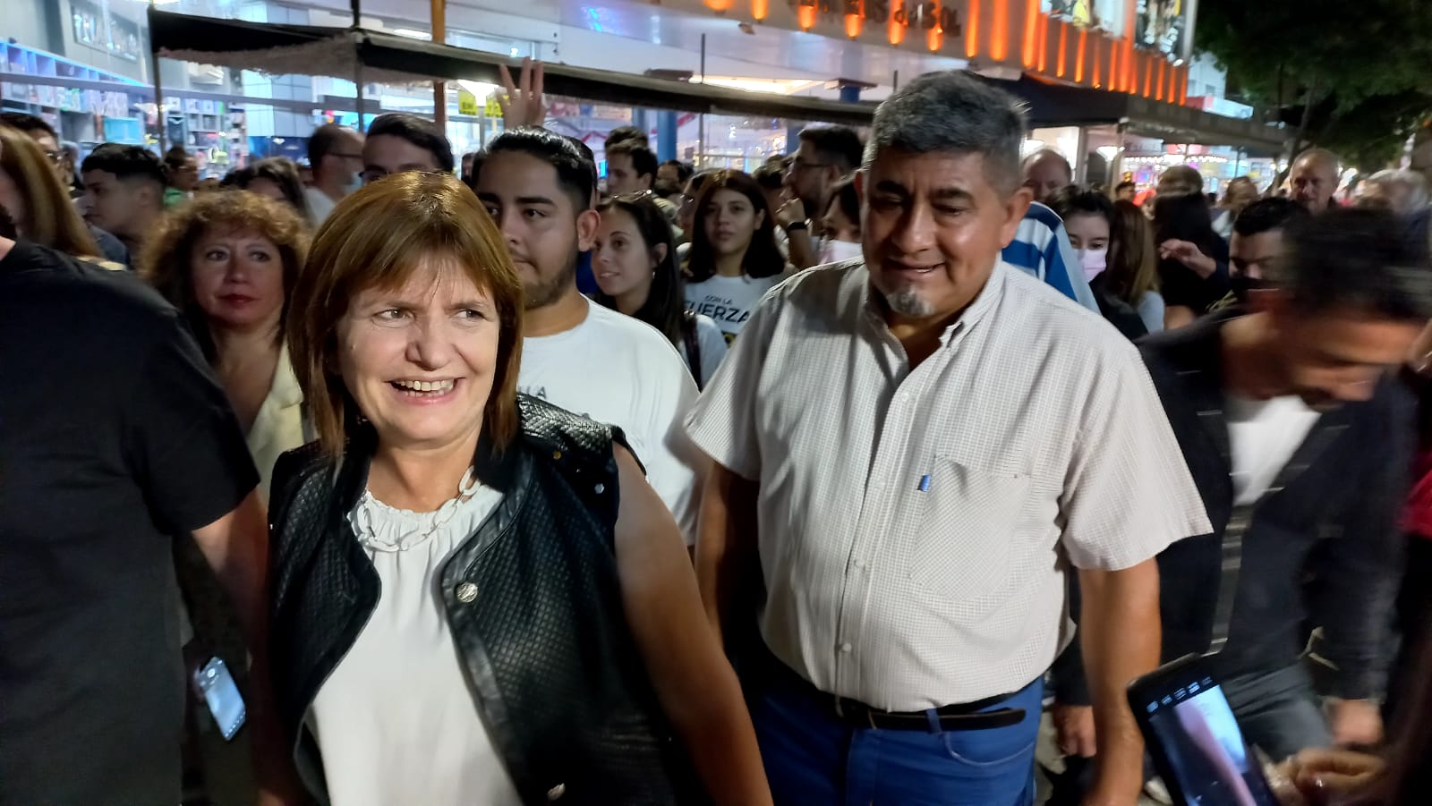 La dirigente del PRO, Patricia Bullrich, recorrió este domingo por la noche varias cuadras de la peatonal de Villa Carlos Paz en momentos en que estaba repleta de turistas.