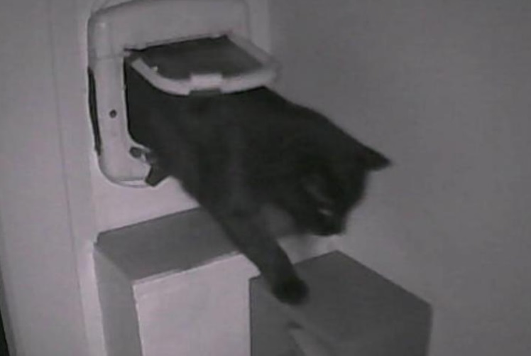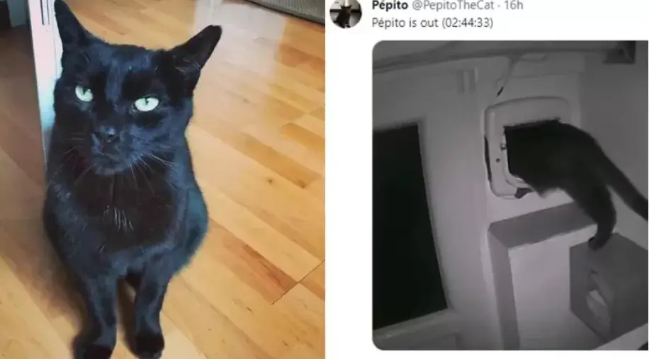 “Pépito está fuera” y “Pépito regresó a casa”, se lee junto a la hora en la que se registró la actividad y una foto del gato saliendo o entrando por una compuerta pequeña para mascotas son los posteos diarios de la cuenta del felino.