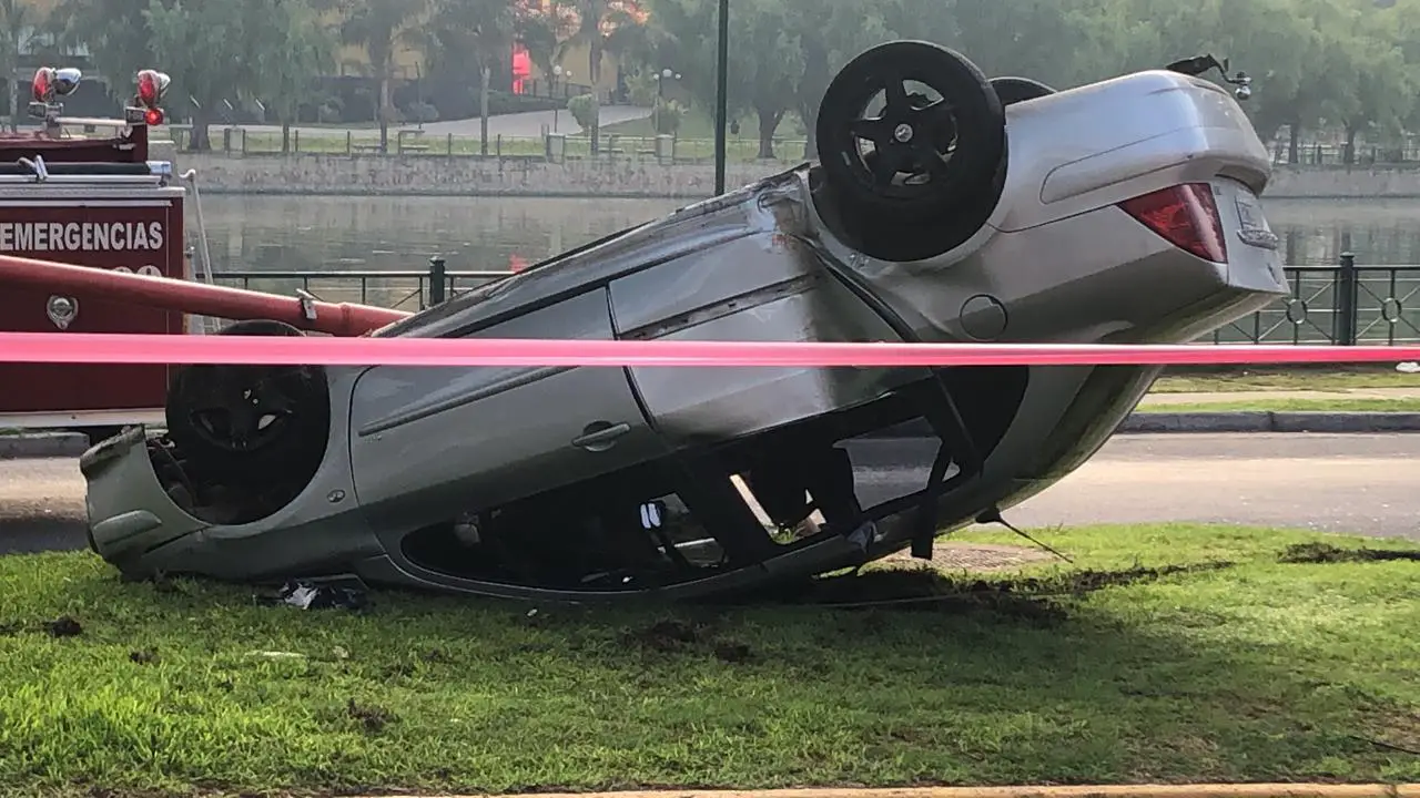 El conductor de un Peugeot 307 perdió el control del vehículo y lo dio vuelta en la calle Bernardo D´Elía, sobre la costanera oeste del lago San Roque.