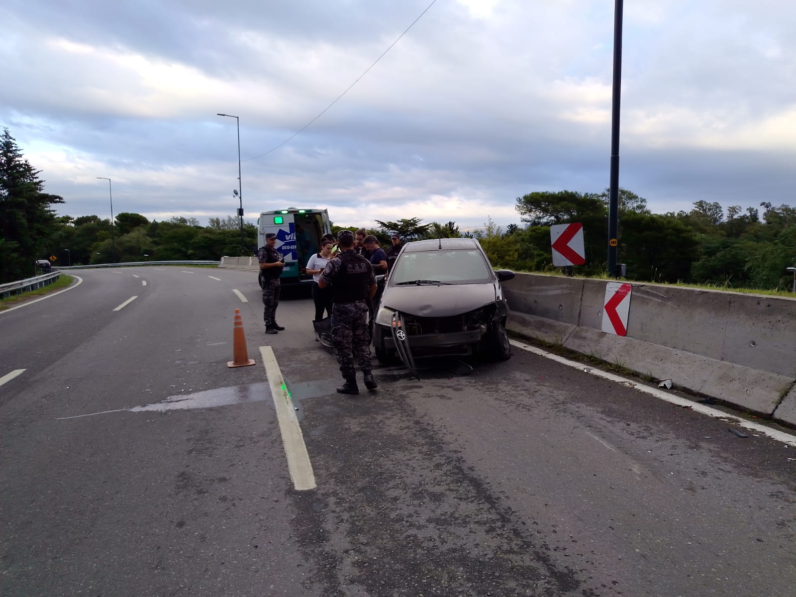 Alrededor de las 08:20 hs, un automóvil marca Toyota Etios en el que circulaban dos hombres —el conductor de 49 años y su acompañante de 40— perdió el control por causas que aún se intentan establecer. Tras una maniobra brusca, el vehículo terminó colisionando de frente contra el muro de contención que divide los carriles de la calzada.