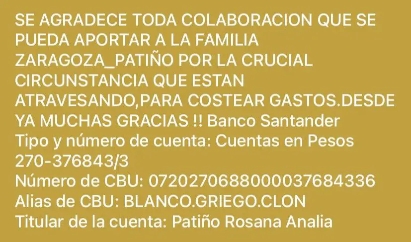 Los familiares y vecinos de Tanti están pidiendo ayuda solidaria para colaborar con la familia de una mujer que sufrió un aneurisma cerebral y quedó internada en la Unidad de Terapia Intensiva del Hospital Domingo Funes.