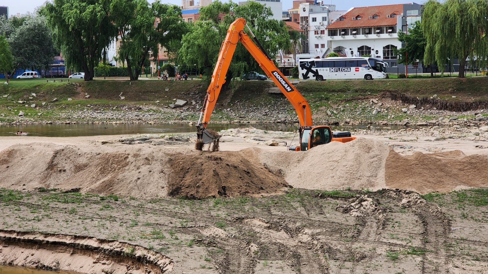 Y sigue: “Los operarios han realizado tareas de relleno para la construcción de una rampa de acceso al lecho, para lo cual utilizaron desechos de obra, escombros, residuos plásticos, telgopor y papel de bolsas de cemento, con lo cual agregaron más basura a la costa”.