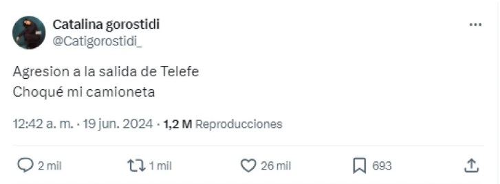 Según informaron a través de sus cuentas de X, en medio de los piedrazos que recibió su camioneta, Catalina Gorostidi terminó chocando.