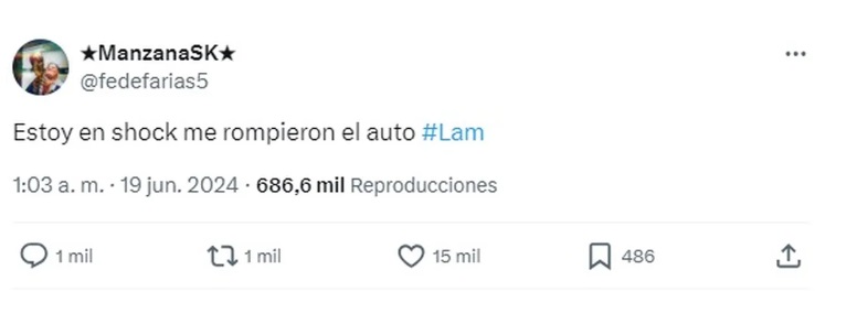 Así como Manzana hizo saber por medio de la misma red social que su auto sufrió agresiones de todo tipo. “Estoy en shock me rompieron el auto”.